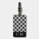 Monogrammed Black Plaid Modern Simple Initials Luggage Tag