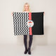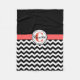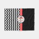 A personalised fleece blanket with a black and white chevron pattern. You can personalise this product by adding your own initial and name to the centre of the monogram logo.