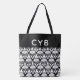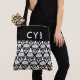 Monogrammed Black & White Henna Pattern Tote
