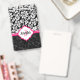 Monogrammed Black White & Pink Damask ID Badge