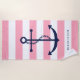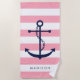 Monogrammed Blue Anchor on Pink Stripes Beach Towel