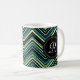 Monogrammed Blue Black Tribal Chevron Pattern Coffee Mug