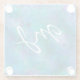 Blue and green bokeh digital art glass coaster. Add initialis the personalise area.
