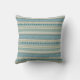 A stylish throw pillow in ocean blue and light sandy cream colours, decorated with patterned stripes. Personalise with your initial as a monogram on the cream square panel.