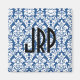 Monogrammed blue damask magnet.