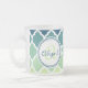 Monogrammed Blue Green Moroccan Lattice Pattern Frosted Glass Coffee Mug