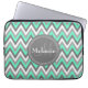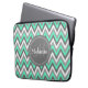 Monogrammed Blue & Grey Chevron Pattern Laptop Sleeve
