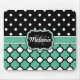 Monogrammed Blue Quatrefoil Lattice Polka Dot Mouse Mat