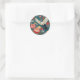 Monogrammed Blue & Red Floral & cranes Chinoiserie Classic Round Sticker
