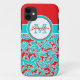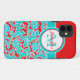This modern, personalised, turquoise blue, red, and white floral damask pattern Case-Mate Barely There™ iPhone 5 Case has spots for you to add your name, initials, monogram, or other text. If you need help customising this, please email niteowlstudio@gmail.com.