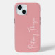 This monogrammed blush pink iphone 15 case is trendy yet and classic.  It features your name in a fabulous modern script font in white.  It's simple and minimal and professional.