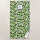 Monogrammed Botanical Green Leaves Pattern Beach Towel