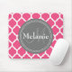 Monogrammed Bright Pink & Grey Quatrefoil Mouse Mat