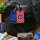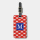 blue square monogrammed red sea themed luggage tag with crabs pattern