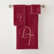Monogrammed - burgundy colour bath towel set Easily personalise it now with the letters of your choice . This colour is a dark red with a purple tint ( rgb 800020 ) .