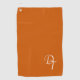 Monogrammed - burnt orange colour Golf Towel . Designed for those who like the 1970's retro feel .Orange - the colour of the Sun - is often associated with the sign of Leo . You can consider this when choosing a gift .