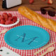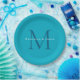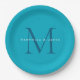 Monogrammed Calligraphy Azure Blue Modern Plain Paper Plate