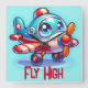Monogrammed Cartoon plane blue | Square Wall Clock