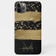 Monogrammed Cell Phone Case Black Gold Script Name Girly fun modern in brush strokes with gold, glitter, chic black and adorned with your script monogram, first name and initial.