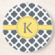 Monogrammed Charcoal and White Quatrefoil Pattern Coaster
