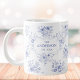 Monogrammed Classic Blue Flowers Floral Pattern Large Coffee Mug