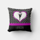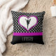 Personalised Cheerleading throw pillow -- black and white polkadots, with a heart and a cheerleader in the centre. Add your name!