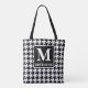 Monogrammed Classic Serif BW Houndstooth Tote Bag