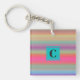 This monogrammed single-sided acrylic keychain features a colourful horizontal stripe pattern with a single monogram initial in the centre. You can personalise this product by using the custom template.