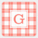 Monogrammed Coral Orange and White Plaid Pattern Square Sticker