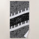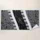 Contemporary curved piano keys and grey and black musical notes with contrasting black and grey panels
