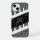 Monogrammed curve piano keys and musical notes iPhone 15 case