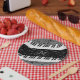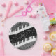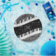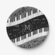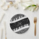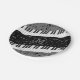 Contemporary curved piano keys and grey and black musical notes with contrasting black and grey panels