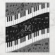 Contemporary curved piano keys and grey and black musical notes with contrasting black and grey panels
