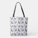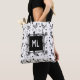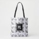 Monogrammed Cute Black and White Cartoon Chickens Tote Bag