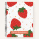 Monogrammed cute pattern strawberries girly modern notebook for her. This pattern look very fresh of the strawberries on the white background, a modern colourful and stylish look. The frame under the name is perfect pink and good match to the pattern with beautiful white text on it.