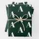 Customise w/Initial monogram Letter dark pine green and white Wrapping Paper Sheets