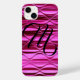 Monogrammed Dark Pink Shiny Satin Waves Case-Mate iPhone Case