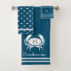 Monogrammed Dark Teal Blue White Crab Nautical Bath Towel Set