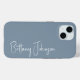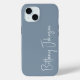 This monogrammed dusty blue iphone 15 case is trendy yet and classic. It features your name in a fabulous modern script font in white. It's simple and minimal and professional.