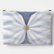 At the center, a jewel motif with a luminous gemstone design adds a touch of regal glamour and vintage charm. The dusty blue and white tones evoke luxury, creativity, and individuality, making it a stylish statement accessory for everyday use. A custom monogram at the top transforms this pouch into a unique monogrammed accessory tailored to its owner.