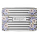 Monogrammed dusty blue matching flowers stripes bath mat
