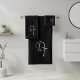 This luxurious bath towel set features a rich eggplant colour (#614051) base, beautifully accented with pale purple monogrammed letters in a simple yet elegant font. Easily personalise it with the initials of your choice, making it a thoughtful option for wedding gifts, housewarming presents, or simply as a stylish addition to your own bathroom. Designed by Alma Wad, this towel set combines sophistication with practicality, perfect for any occasion.