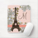 Personalise this springtime in Paris Eiffel Tower monogrammed mousepad with a pretty cherry blossom tree, pink stitched ribbon and polk-a-dot background with your initial or monogram. This monogram mouse pad makes a lovely home office gift. Designed by Chrissy H. Studios, LLC. All Rights Reserved.