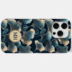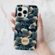Monogrammed Elegant Blue Ginkgo Floral Pattern Case-Mate iPhone Case