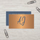 Modern trendy monogrammed faux metallic brushed sleek copper and dark navy blue business card with fully editable typography script. ---- Suitable for painters, home decorators, professional artists, makeup artists, designers or industrial activities. ----- Please note that the script lettering and the background navy colour on the reverse are editable after selecting CUSTOMIZE IT option.