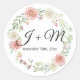 Round envelope seal with your initials and wedding date are perfect to seal envelopes for wedding invitations and bridal shower parties.  Hand Watercolored wreath with blush and ivory roses, various leaf foliage elements of seeded eucalyptus in varying shades of soft greyed greens by artist, Audrey Jeanne Roberts.  Copyright.
