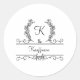 Monogrammed Family Name Script Flourish Leaves Classic Round Sticker