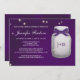 A gorgeous purple and plum hued firefly mason jar couples wedding shower invitation that looks like it glows. Add the initials and or monogram of the bride and groom to the jar with a deep purple and white printed ribbon look design. A subtle vintage damask antique lace border compliments this rustic yet elegant design with enchanting fireflies inside and outside of the jar. These invites are beautiful for a nighttime, barnyard, farmhouse or country themed fall bridal shower party. Artwork © Chrissy H. Studios, LLC. All Rights Reserved.
