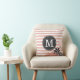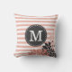 A chic and trendy striped pattern with flower blossom graphics and monogram throw pillow in a girly pale pink and white. A contrasting dark grey label frame with a customisable monogram template is featured front and centre in a bold serif font. The design has a vintage french garden style with a personal touch that is sure to be a hit with girly girls that like classic floral graphics.
