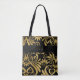 Monogrammed Gold and Black Elegant Swirls Tote Bag